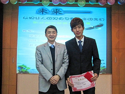 紧张而激动的时刻到来,2010年四川大学职业规划视频设计大赛最后成绩马上揭晓,作为此次活动的评委嘉宾,成都大势管理顾问公司的贺老师、杨老师和许老师为此次获奖者颁发奖状及奖品。